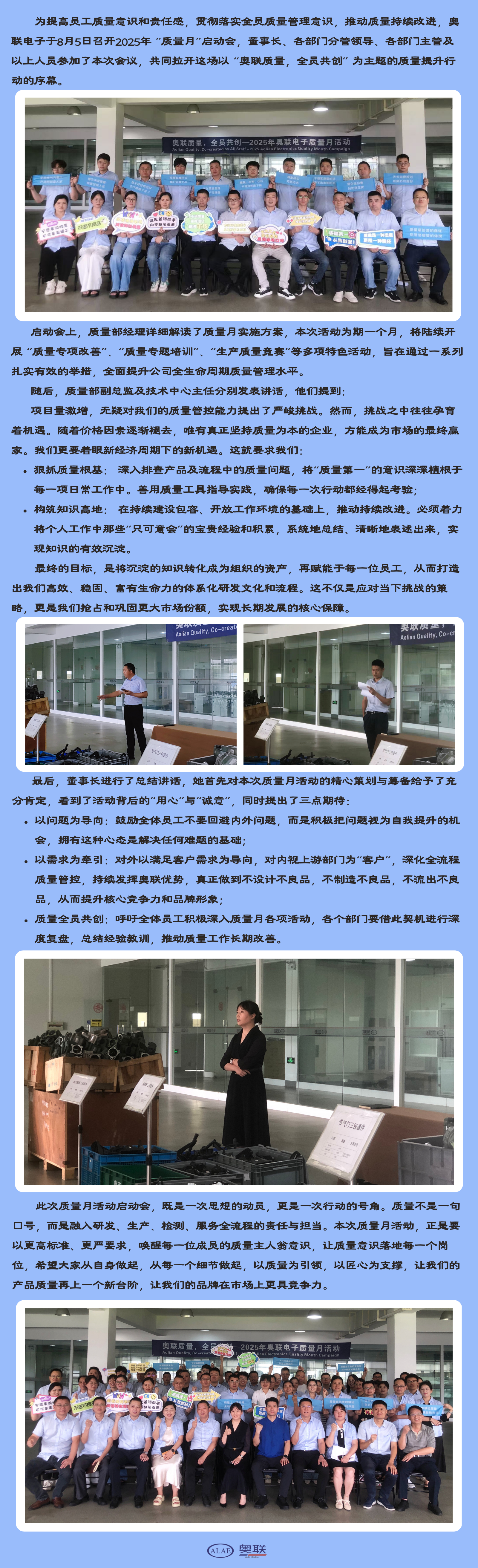 奧聯質量,全員共創—20ào25年奧聯zhì電子“質huó量月”活動啓動會